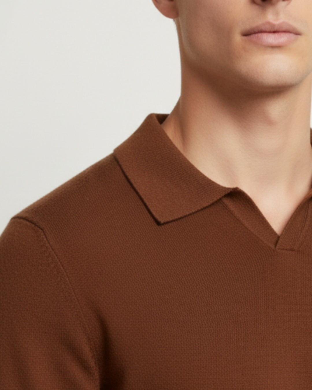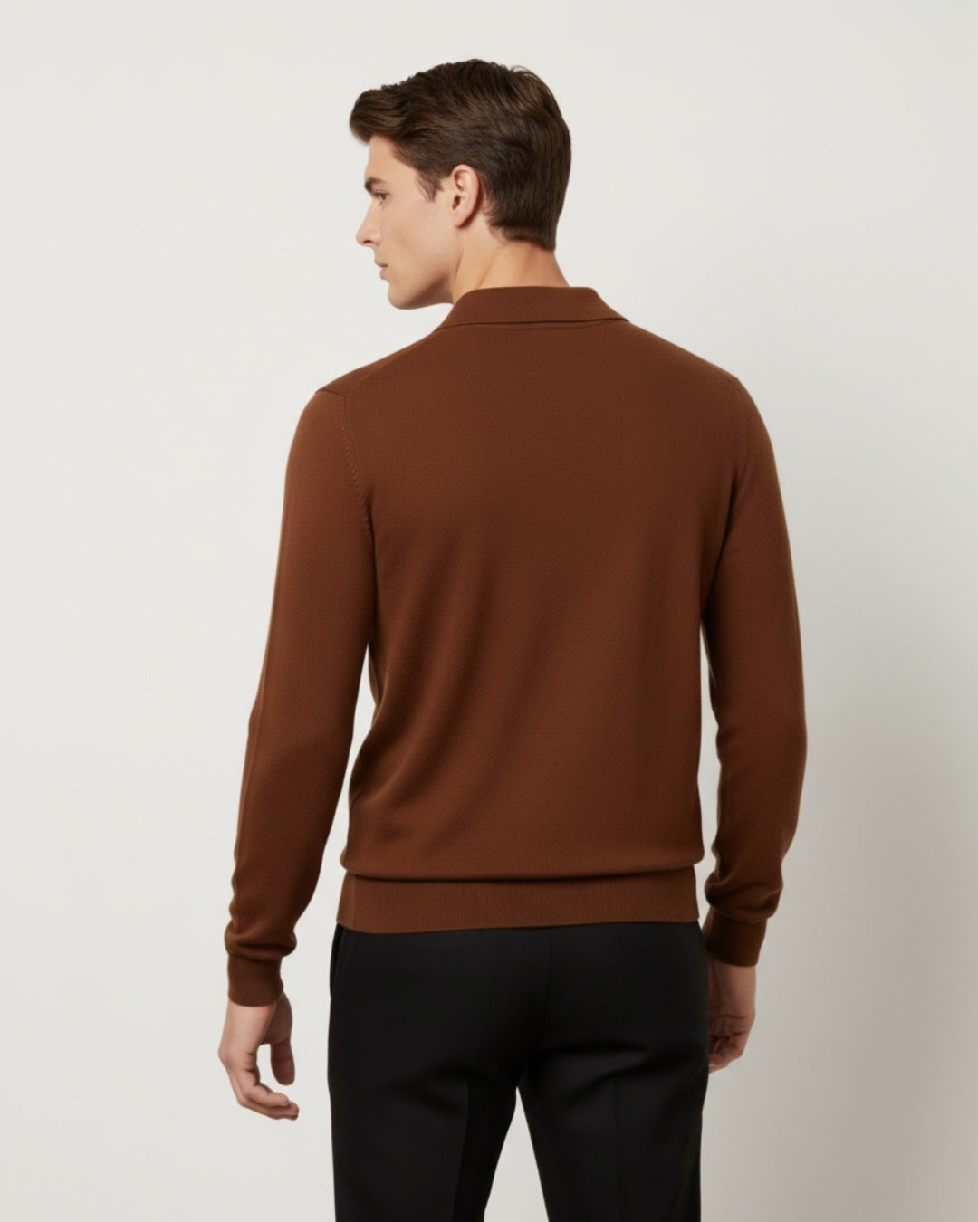 メリノウールの長袖ポロシャツ - シナモン